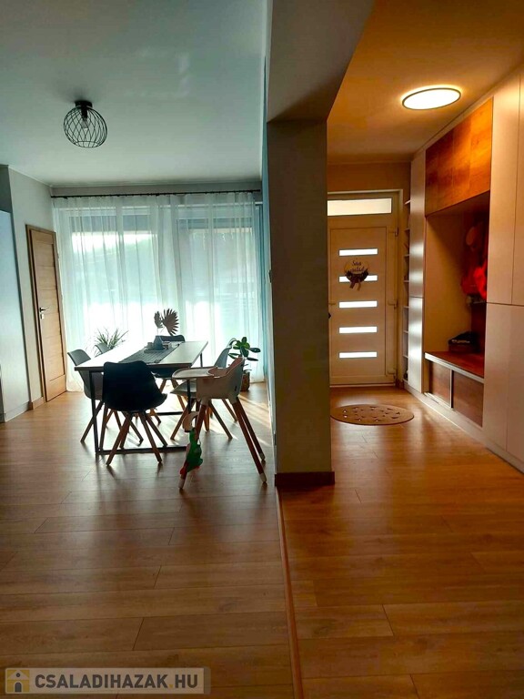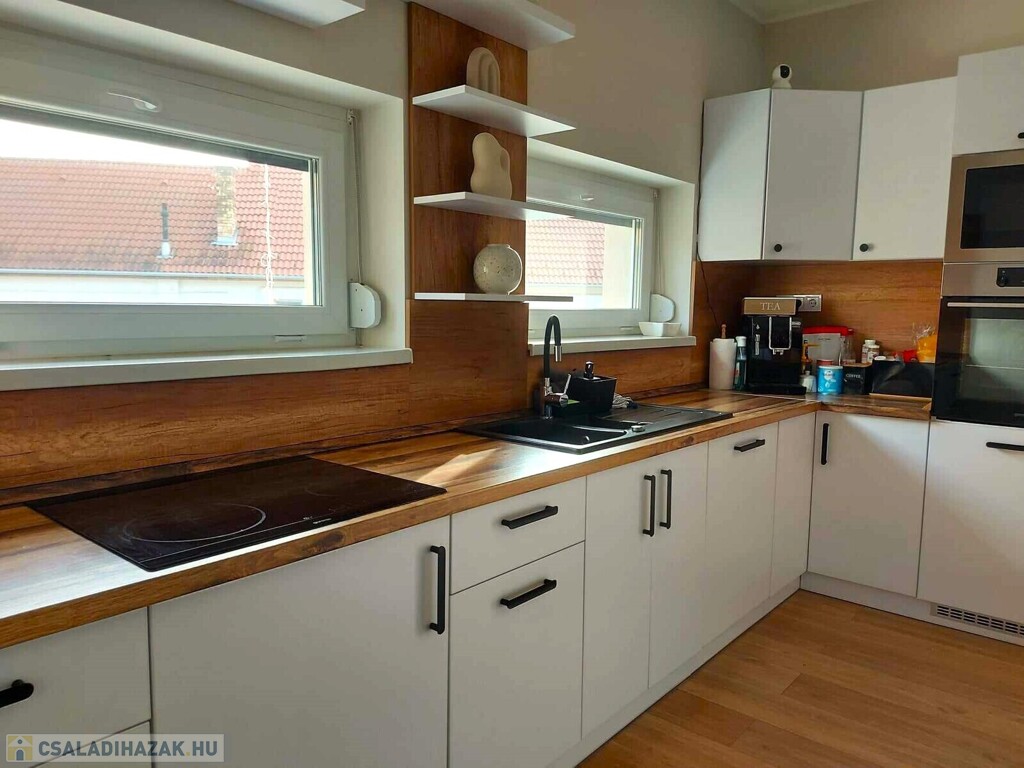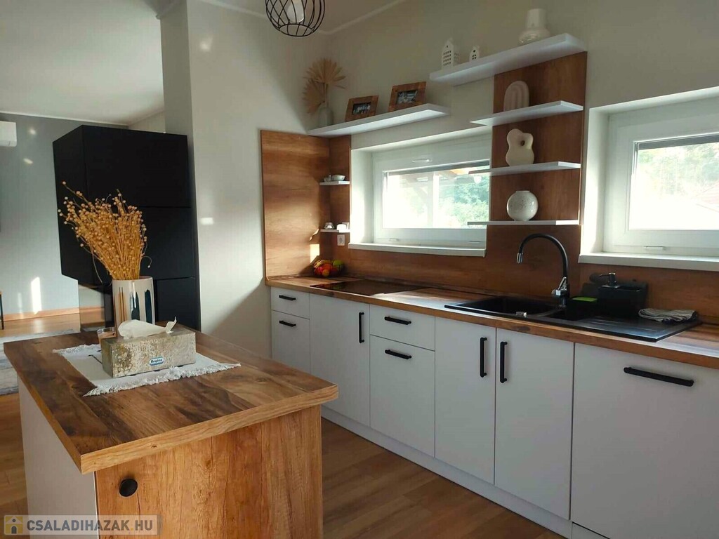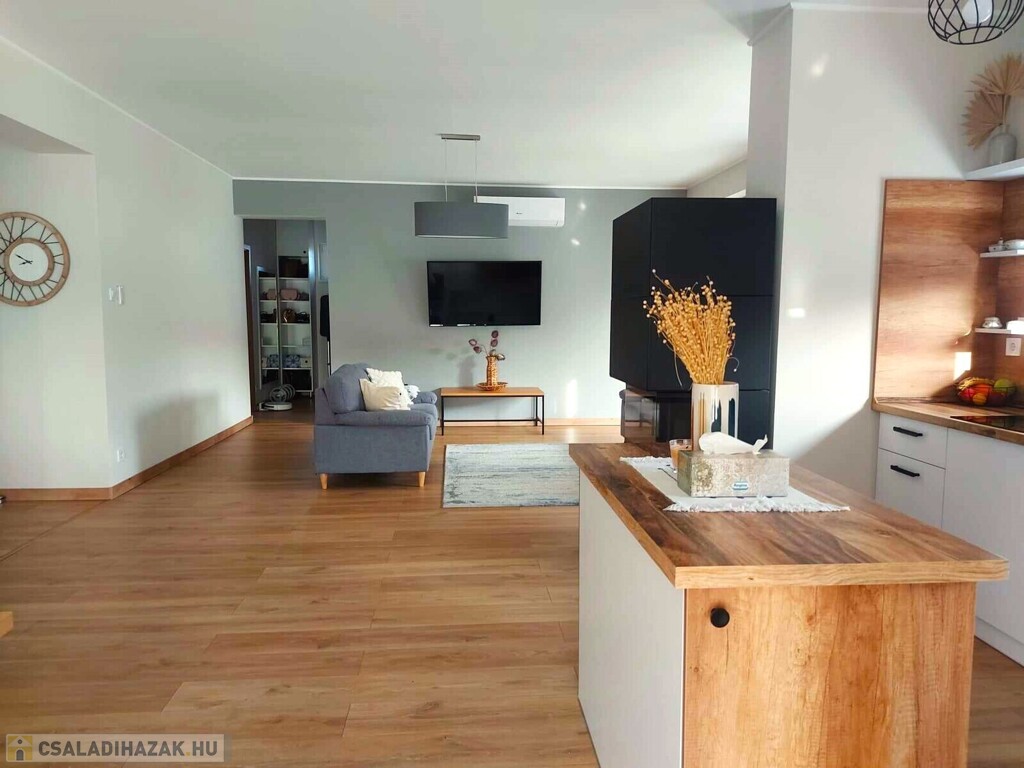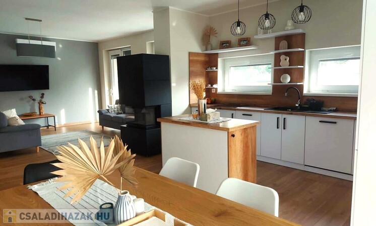 Nyírpazony-Kabaláson eladásra kínálok egy 136 m2 nappali+4 szobás, dupla komfortos családi házat. 2022-ben 30-as Porotherm okos téglából épült, 15 cm szigeteléssel. Elosztását tekintve 4 külön nyíló szoba, étkező, amerikai konyha-nappali, 2 fürdőszoba, spájz, gardrób. Nappaliból 20 m2 teraszkapcsolattal. Értékét tovább emeli a beépített kandalló, klíma. Egyedi tervezésű gépesített konyhabútor minőségi gépekkel felszerelve. Fűtéséről gázkazán gondoskodik padlófűtéssel. Riasztóval szerelt, kamera rendszerrel ellátott. A telek területe 1403 m2, mely részben térkövezett. 2 állásos garázs, elektromos kapuk, fűthető medence. Bővebb információkert várom hívását. Az ingatlan azonosítója: 97701Érdeklődni: +36303275386 Az ingatlan azonosítója: 97701 Érdeklődni: +36303275386