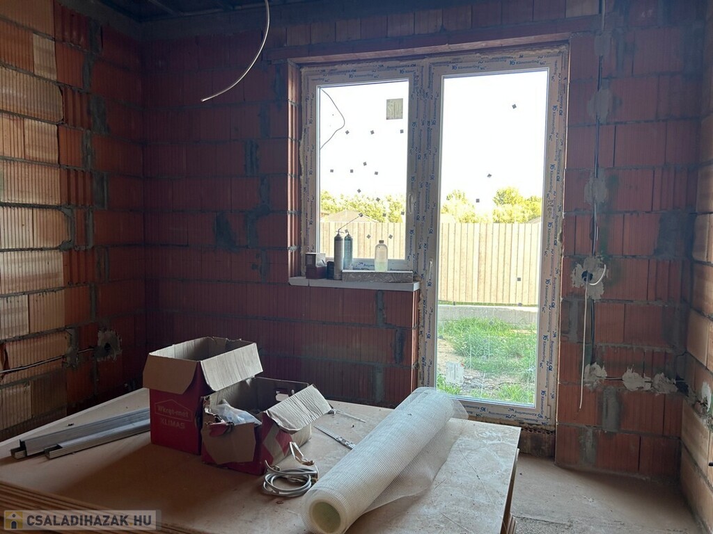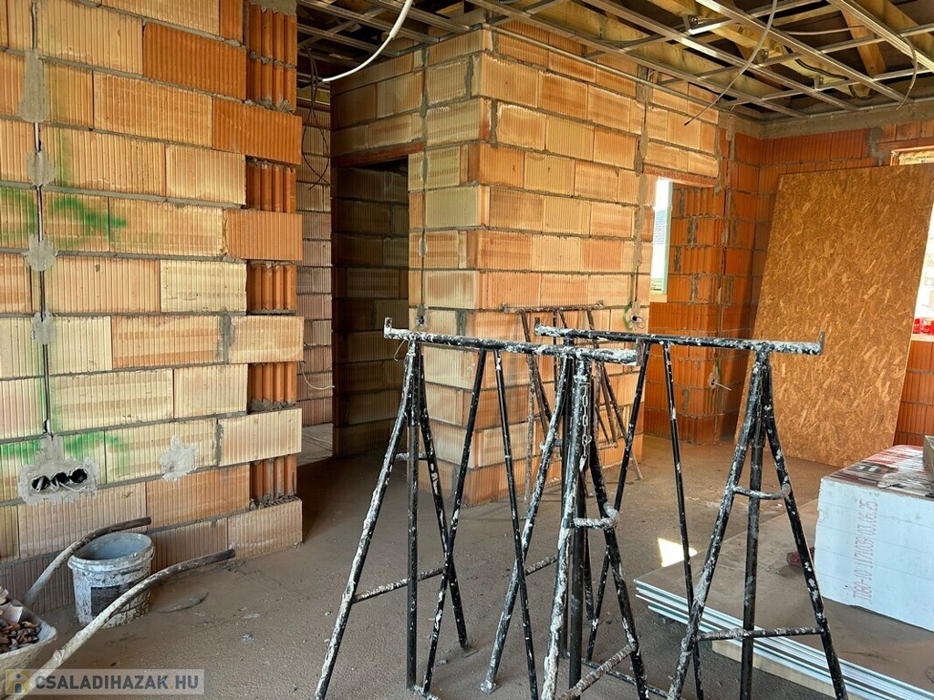 Nyírtelek frekventált részén eladó 83 m2-s, három különnyíló szobás,nappali+étkező+konyha egy térben, kamra, háztartási helység, fürdőszoba külön wc, 3 rétegű üveg Kömmerling műanyag nyílászárók, hőszivattyús fűtésrendszer padlófűtésre irányítva, 5 kw-s hűtő-fűtő klíma, utcáról szép kerítés, térkövezett bejárat, 30 m2-s gépkocsi beálló melynek automata garázskapuja van. Az ingatlan 380 m2-s telken fekszik, porotherm 30-s téglából épült, külsőleg 15 cm-s nikecel szigetelés, mennyezet fémvázra erősített tűzálló gipszkarton rajta párazáró fólia, fafödémes rajta 25 cm-s üveggyapot borítás a tető betoncseréppel fedett alatta a páraáteresztő fólia a belső falak gépi vakolással burkolva. A szaniterek a burkolat és a belső ajtók még kiválasztható. KÖLTÖZNI KB. KÉT HÓNAP MÚLVA! VEVŐK RÉSZÉRE A KÖZVETÍTÉS DÍJTALAN, HITEL IGÉNYLÉSBEN IS TUDOK SEGÍTENI!