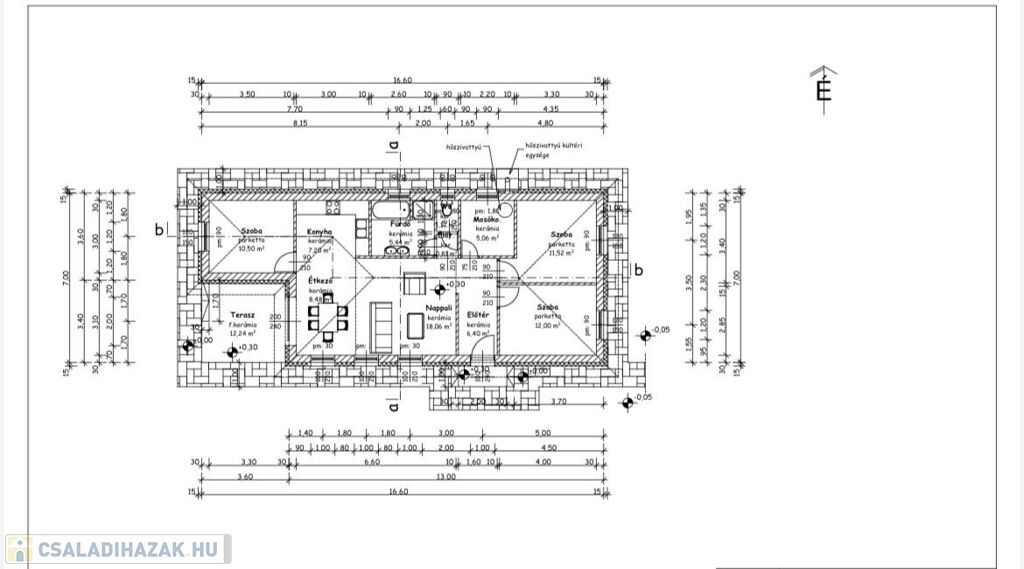 Szigetelés: 15 cm-es homlokzati-, 30 cm-es födém- és 10 cm-es aljzatszigetelés