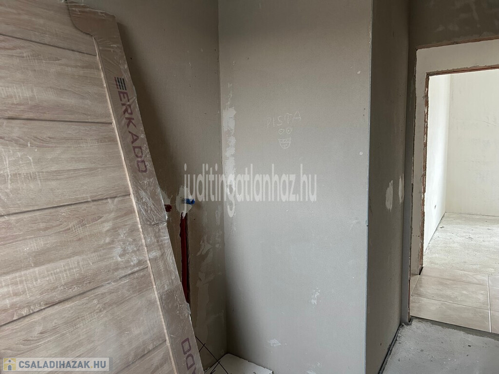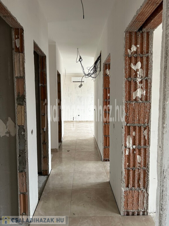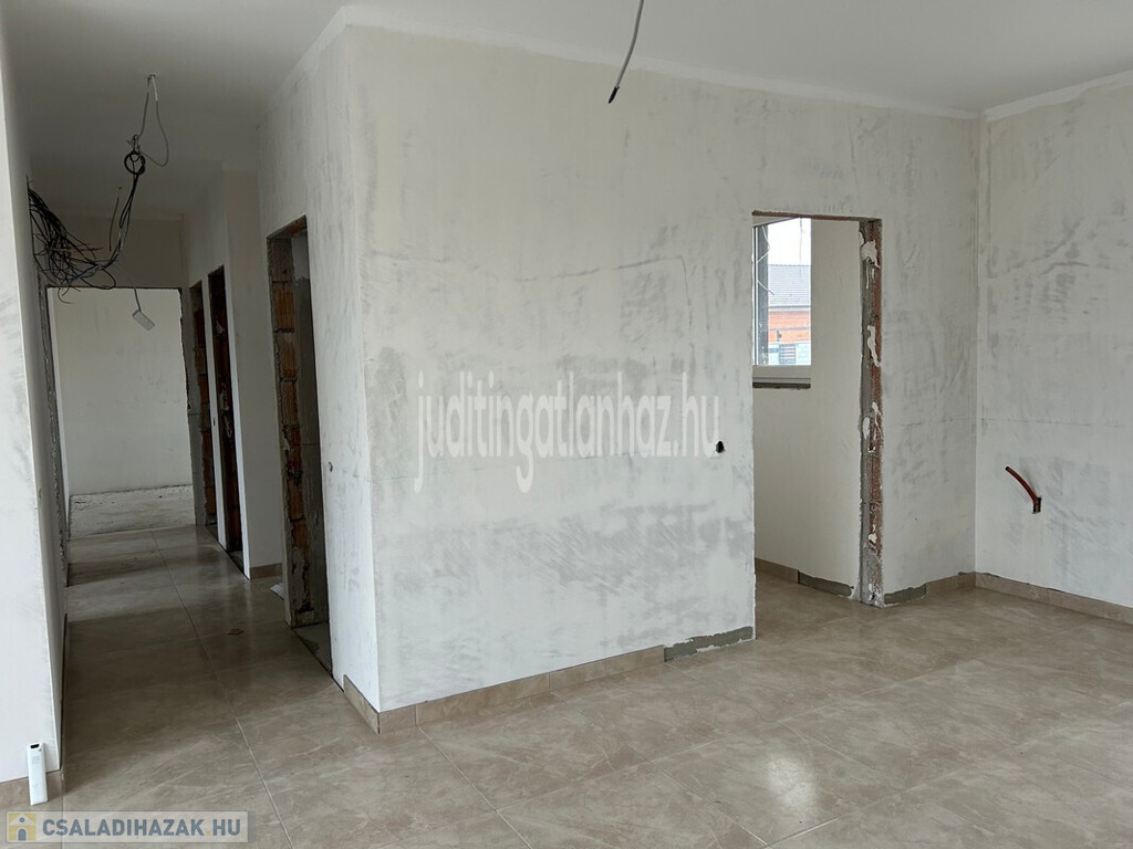 Nyírtelek frekventált részén eladó 83 m2-s, három különnyíló szobás,nappali+étkező+konyha egy térben, kamra, háztartási helység, fürdőszoba külön wc, 3 rétegű üveg Kömmerling műanyag nyílászárók, hőszivattyús fűtésrendszer padlófűtésre irányítva, 5 kw-s hűtő-fűtő klíma, utcáról szép kerítés, térkövezett bejárat, 30 m2-s gépkocsi beálló melynek automata garázskapuja van. Az ingatlan 380 m2-s telken fekszik, porotherm 30-s téglából épült, külsőleg 15 cm-s nikecel szigetelés, mennyezet fémvázra erősített tűzálló gipszkarton rajta párazáró fólia, fafödémes rajta 25 cm-s üveggyapot borítás a tető betoncseréppel fedett alatta a páraáteresztő fólia a belső falak gépi vakolással burkolva. A szaniterek a burkolat és a belső ajtók még kiválasztható. KÖLTÖZNI KB. KÉT HÓNAP MÚLVA! VEVŐK RÉSZÉRE A KÖZVETÍTÉS DÍJTALAN, HITEL IGÉNYLÉSBEN IS TUDOK SEGÍTENI!