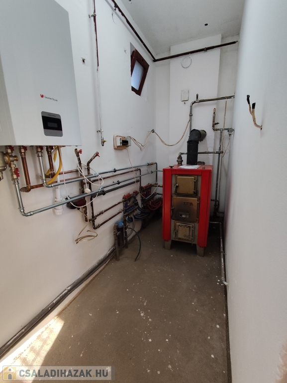 A fűtésről egyedi gázkazán és vegyes tüzelésű kazán gondoskodik, így a ház energiafelhasználása rugalmasan alakítható. A fa, hőszigetelt nyílászárók tovább növelik az energiahatékonyságot, míg a klíma az egész éves komfortérzetet biztosítja.