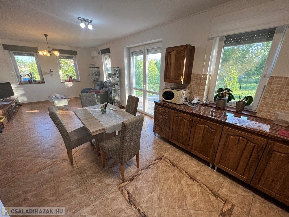 Nyúl település, csendes, csekély átmenő forgalmú részén, 1524 m2-es, összközműves, 20 m széles utcafrontú telken lévő két különálló lakóépület eladó!