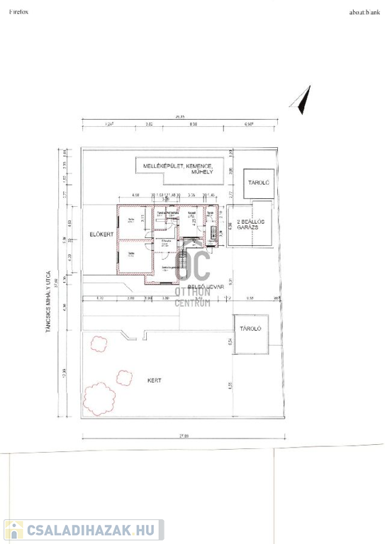 A ház 1201 m2 es telken található,melynek utcafront szélessége 37 m.