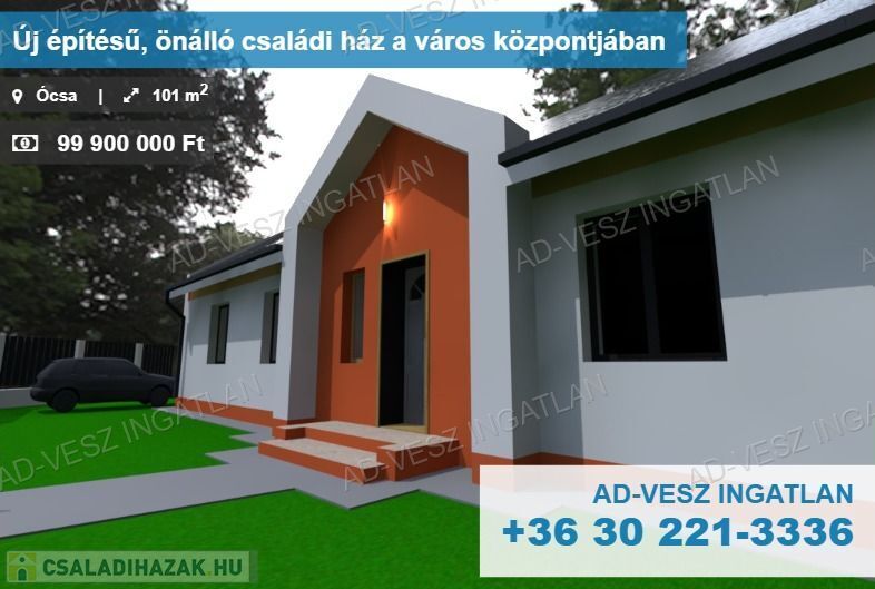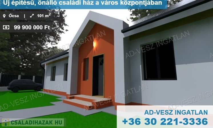 Eladásra kínálunk Ócsa központjában egy önálló, kulcsrakész, új építésű családi házat.