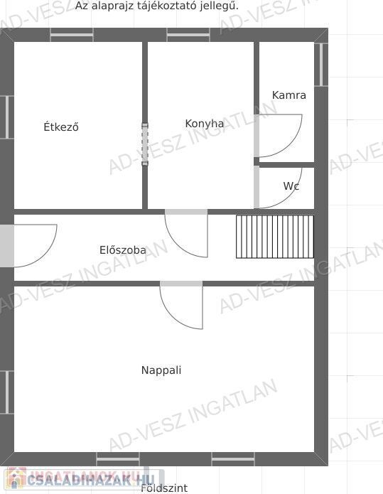 A földszinten kialakításra került egy hatalmas, tágas, világos nappali, előszoba, konyha, étkező, wc.