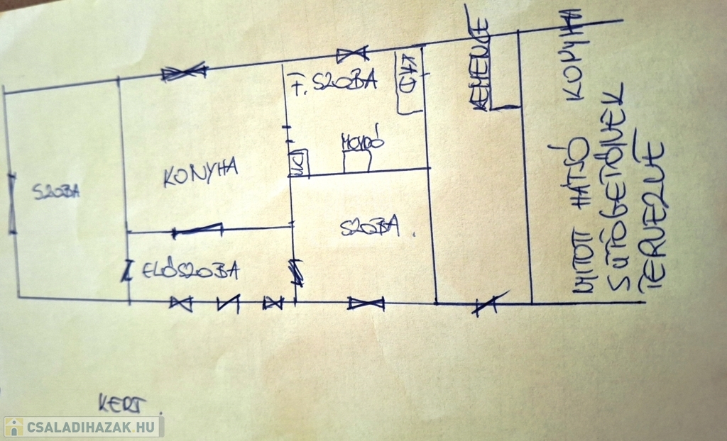 A külső vakolat és a színezés az új tulajdonosra vár.