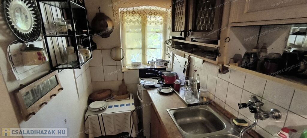 A ház 63 m² alapterületű, 2 teljes és 1 félszobával rendelkezik, két bejárata van, így akár külön nyíló szobás, praktikus elrendezés is kialakítható. Az alaprajz nem a hagyományos, szobáról szobára átjárós megoldást követi, hanem kényelmes, jól használható tereket biztosít. A közművek vezetékesek, 3 fázis áll rendelkezésre, az épület szerkezetileg stabil. A fűtés gázkazánnal és szilárd tüzelésű megoldással egyaránt biztosított, így a rezsi kedvezően alakítható. A telken szabályos, feltüntetett melléképületek találhatók: nyári konyha és garázs.