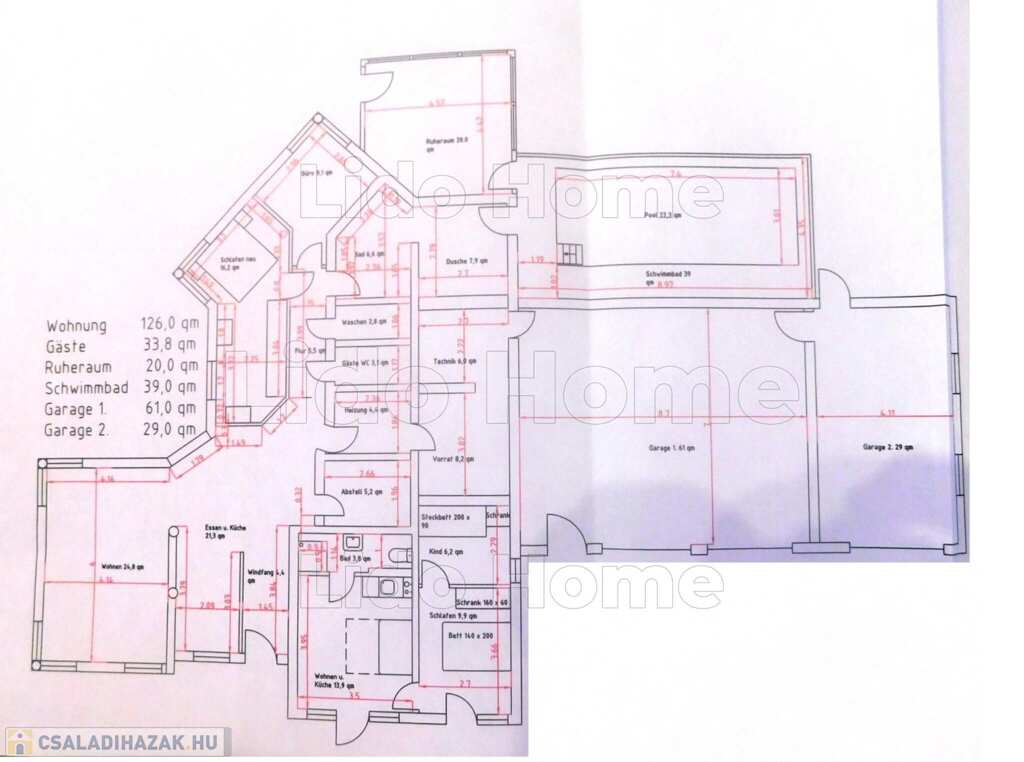 - a ház alapterülete: 126 nm, a külön bejáratú apartman alapterülete: 33,8 nm