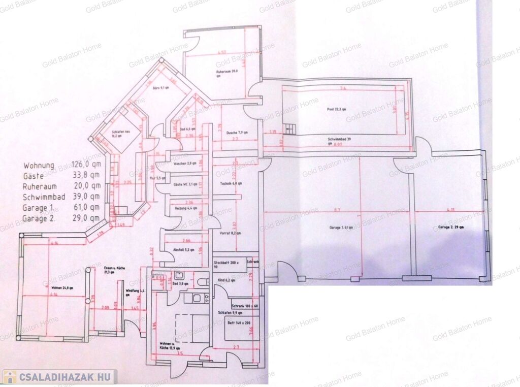 - a ház alapterülete: 126 nm, a külön bejáratú apartman alapterülete: 33,8 nm