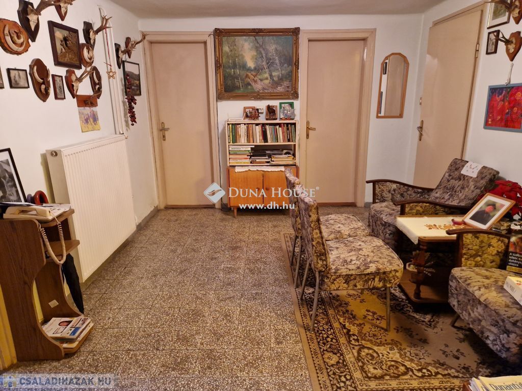 Eladó Orfű főutcájában egy, az 1970 évek végén épült, kétszintes, masszív, átlagos, jó állapotú, tégla szerkezetű családiház. A lakóház földszintjén előtér, wc, konyha, kamra, szoba, zuhanyzó és egy garázs került kialakításra. Az emeleti szintet az előtérből egy belső lépcsőn keresztül érhetjük el, ahol egy közlekedőből nyílóan 3 szobát, wc-t, fürdőt és egy kamrát közelíthetünk meg. Kisebb átalakítással két önálló lakássá alakítható át. A ház fűtése vegyes tüzelésű kazánnal, valamint egyedileg fatüzelésű kályhákkal megoldott, míg a melegvízellátást villany és fa tüzelésű bojler szolgáltatja. A belső és a külső nyílászárók hagyományos fa szerkezetűek. Az ingatlan egy 1353m2 nagyságú telken helyezkedik el, részben füvesített, részben konyhakertként hasznosított. A hátsó udvari melléképületben egy tároló és egy pince kapott helyett.Az ingatlan Pécstől 15 km-re, Orfű lakóövezetének csendes utcájában, az Orfűi malmoktól 10 perc és a Pécsi tótól 2 perc sétára található. Az ingatlan egyedülálló természeti és épített környezete, infrastruktúrája, elhelyezkedése és kialakítása alapján mind a nyugodt, kényelmes lakhatást, mind vendéglátásban befektetést keresőknek alkalmas lehet.Orfűn kisebb lakóingatlan beszámítás lehetséges értékegyeztetéssel. További kérdés esetén hívjon bizalommal.
