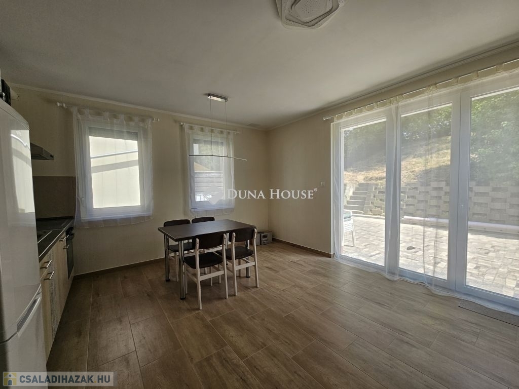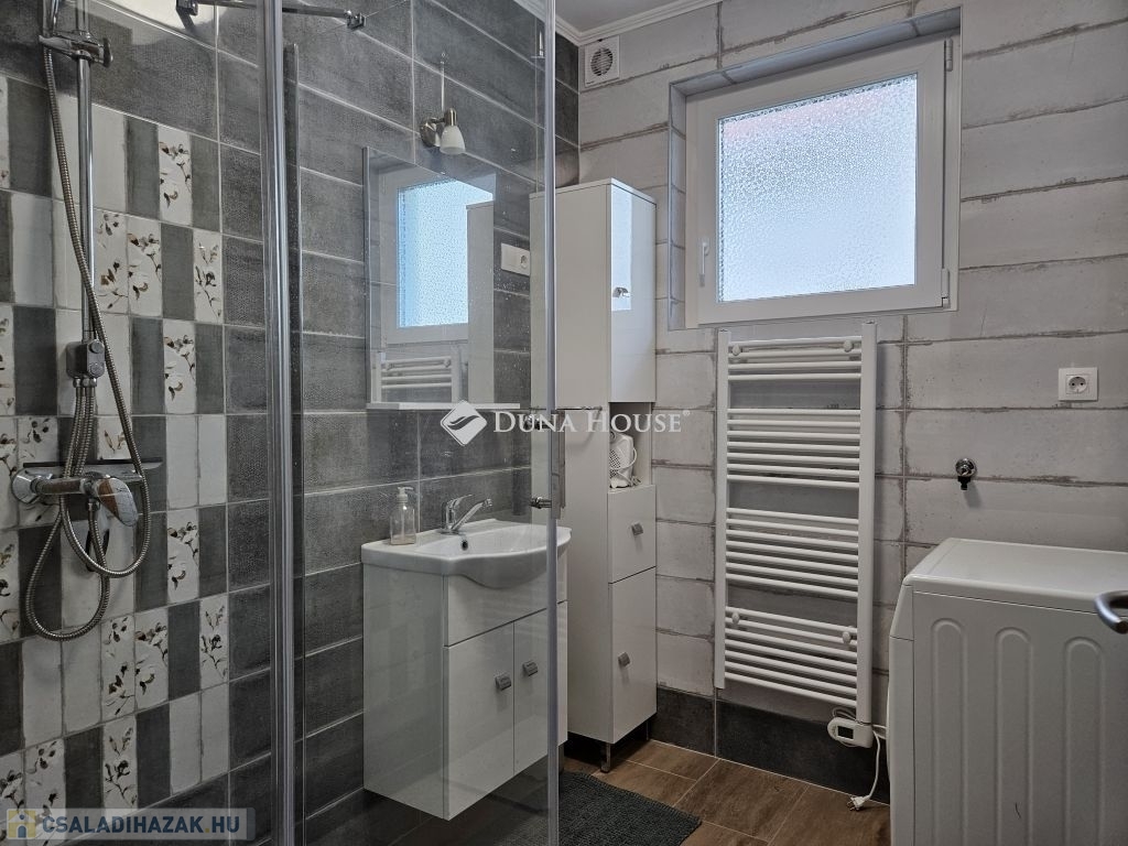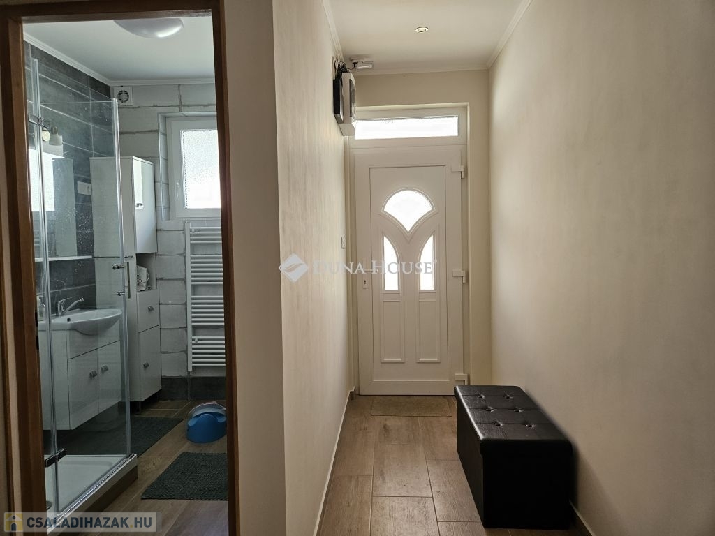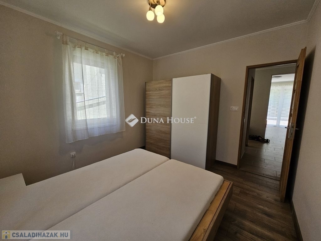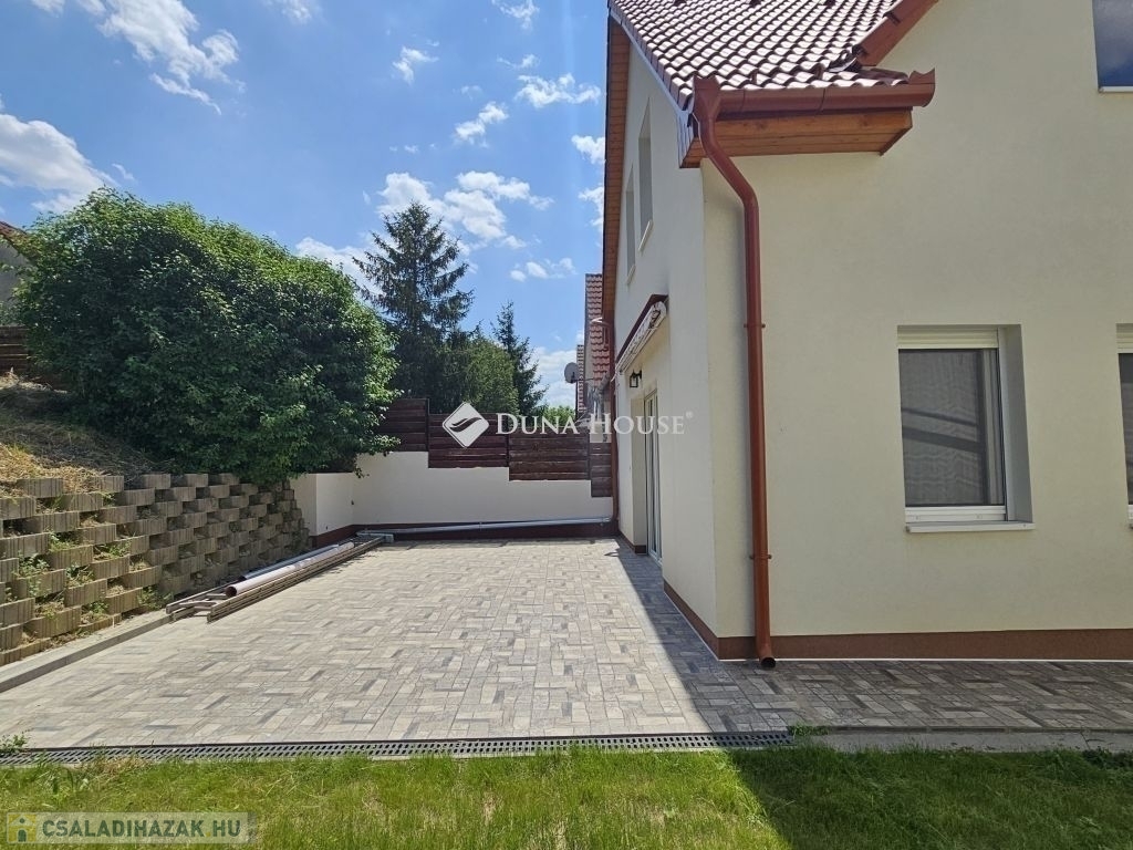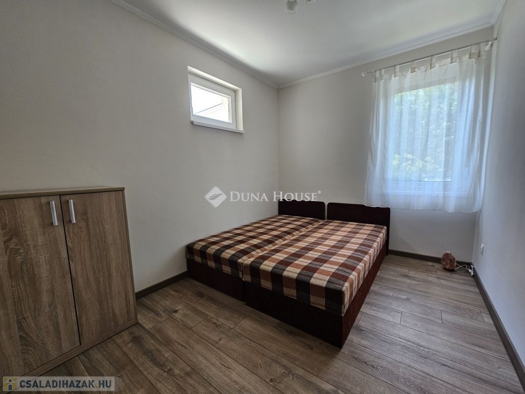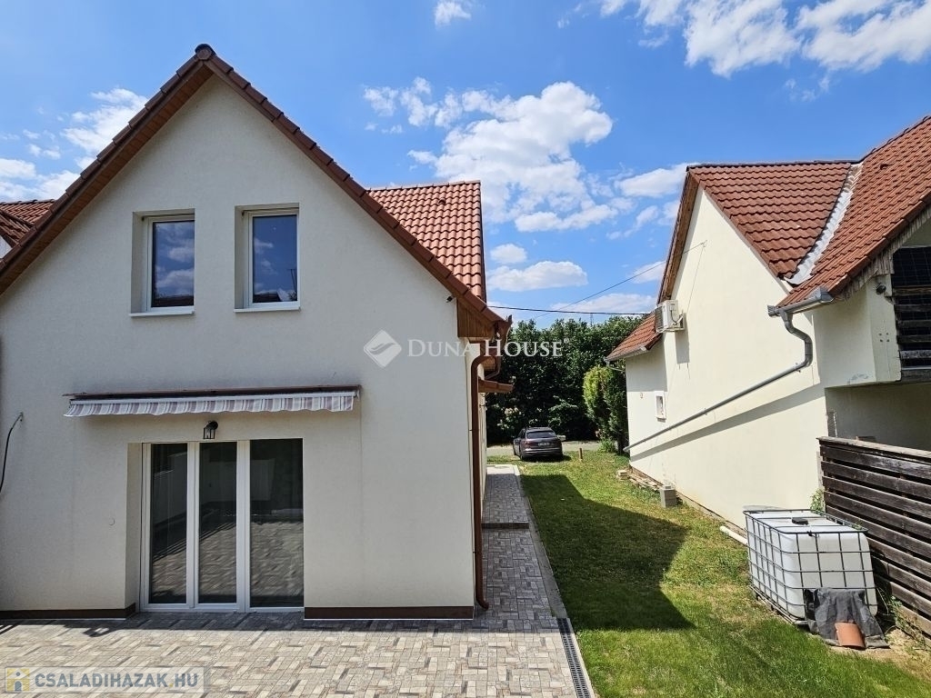 Orfűn a Pécsi tóhoz és a központhoz közel, egy csendes utcában eladó 1/1 tulajdonú 2020-ban épült, sosem lakott (gyakorlatilag új) családi ház. A ház két szintes, a földszint teljesen beépített a következő helységekkel: nappali-konyha, fürdő, külön wc, egy tároló/gépészeti helység, közlekedő lépcsőházzal és két szobával. A tetőtér 1m magas térdfallal készült jól beépíthető kialakításban, a 3db oromfalon 2-2db ablakkal ellátva. Az emelet hasznos alapterülete 52 négyzetméter (59m2 beépíthető). A ház összesen kb.120 lakható négyzetméterrel rendelkezik. Az udvar 420 négyzetméteres, nagyobb része teljesen vízszintes, további része egy támfalt követően emelkedik. Hátul burkolt 36 négyzetméteres terasz található, az épület körül burkolt járda készült. Épületszerkezet: 30cm Porotherm Klíma tégla + 8cm EPS szigeteléssel készült falak, vasalt felbetonnal ellátott E-gerendás vasbeton födém, vasbeton lépcső. Műanyag ablakok 3 rétegű üveggel TROCAL tokkal, alumínium redőnnyel és szúnyoghálóval ellátva készültek (teraszajtónál motoros redőny). Napcella 4,2kW (szaldós), villanybekötés: 3x16A, új víz és szennyvízrákötés készült az építés során, a telek gázcsonkkal is rendelkezik. A lakrész padlófűtéssel ellátott, jelenleg villanykazánnal fűtve, de ez kicserélhető split rendszerű hőszivattyúra, melynek védőcsövezése elő van készítve az épületben. További kérdés esetén hívjon bizalommal.