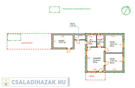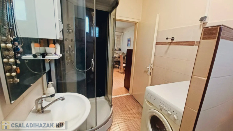 Az ingatlanban található egy tágas, 23,26 m²-es lakóelőtér laminált parkettával burkolva, amely barátságos fogadóteret biztosít. Innen nyílik két kényelmes méretű szoba: az egyik 17,67 m², a másik 18,03 m², mindkettő laminált parkettás, világos és jól berendezhető. A 6,24 m²-es konyha és a 4,94 m²-es fürdőszoba kerámia burkolatot kapott; ezek 10 évvel ezelőtt felújításon estek át, így jó állapotúak, esztétikusak. A házhoz tartozik egy 3,12 m²-es tároló, valamint egy tágas, 14,77 m²-es kazánház is, amely praktikus megoldást kínál a gépészet és további tárolás számára.