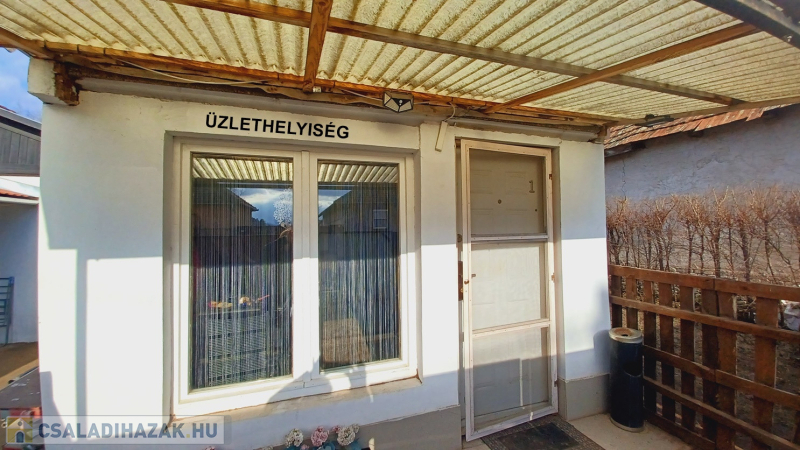A telken található továbbá egy kb. 12 m²-es, külön bejárattal rendelkező üzlethelyiség is, amely villany-, víz- és csatornaközművel ellátott, így akár vállalkozási célra, irodának vagy egyéb hasznosításra is kiváló lehetőséget kínál.
