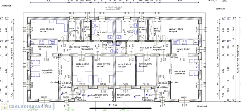 – Kondenzációs kazán, központi fűtés, műanyag nyílászárók