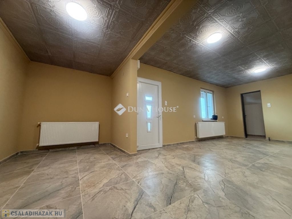Eladó teljeskörűen felújított családi ház Örkényben, nagy telekkel!Örkény csendes, jól megközelíthető részén eladó egy 87 m²-es, amerikai konyhás nappalival + 3 külön nyíló hálószobával rendelkező, teljeskörben felújított családi ház, 900 m²-es telkenAz ingatlan a felújítás során minden fontos műszaki korszerűsítésen átesett:új nyílászárókvillany- és vízhálózat cseremegújult vízvezetékekkorszerű gázcirkó fűtés radiátorokkalminőségi burkolatok minden helyiségbenA ház elrendezése praktikus és élhető: tágas, világos amerikai konyhás nappali, valamint 3 kényelmes hálószoba biztosítja a család minden tagja számára a megfelelő életteret.Az ingatlan alatt további lehetőségek rejlenek:18 m²-es garázs60 m²-es tároló, melynek egy része már üzlethelyiségként lett kialakítva akár vállalkozásra is kiváló!A környék infrastruktúrája kiváló:iskola, óvoda és bevásárlási lehetőségek a közelben, így ideális választás családok számára is.Az ingatlan azonnal költözhető, igényesen felújított, kiváló választás otthonnak vagy akár vállalkozási célra is!Amennyiben hirdetésem felkeltette érdeklődését várom megtisztelő hívását.
