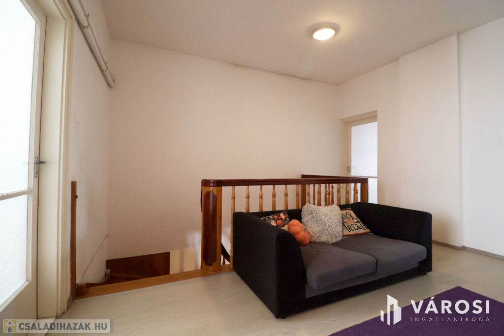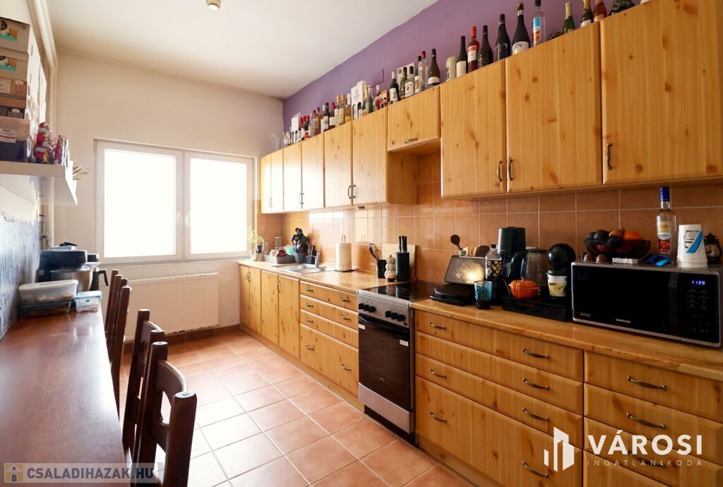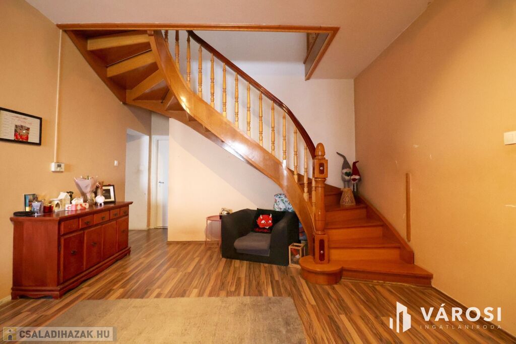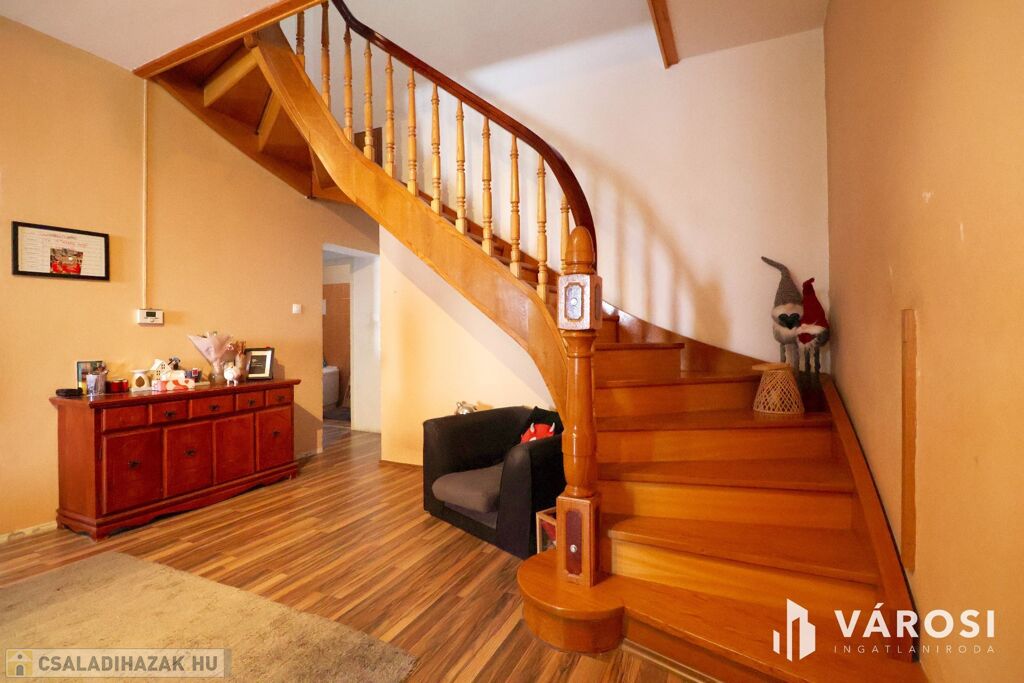 A földszinten ~22,42 alapterületű nappalit, hálószobát, étkezőt és konyhát, fürdőszobát és külön Wc helyiséget, mosókonyhát találunk. Az emeleten 4 hálószoba, kényelmes társalgó, fürdőszoba és wc helyiség, kazánház található, valamint két tároló helyiség. a két szintet egyedi fa lépcső köti össze. Az ingatlan fűtését és meleg víz ellátását gázkazán biztosítja. A parkosított udvaron felújítandó állapotú melléképület, garázs, és fedett autóbeálló helyezkedik el.