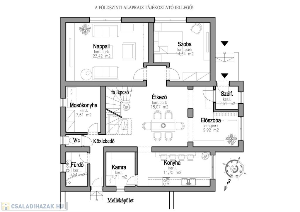 - Földszint: ~105,00 m2, (lásd: alaprajz)
