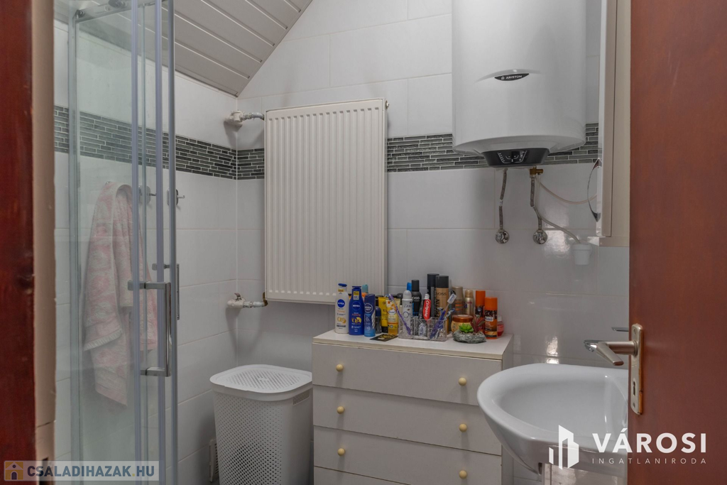 - Két szint, két fürdőszoba – az alsó szinten fürdőszoba káddal és tusolóval, beépített padlófűtés modullal, az emeleten pedig modern tusoló új bojlerrel.