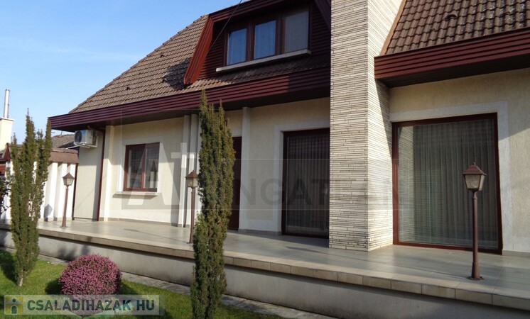 Orosháza belvárosában egy svájci “Év háza” építési terve alapján épült ez a masszív, gondosan megépített, elegáns családi ház 1986-ban, 30-as Porotherm téglából, hőszigetelő vakolattal.
