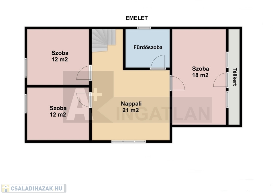 A felső szintre lépéskor szintén egy nappali tárul elénk, melyből nyílnak a praktikusan külön bejáratú hálószobák és egy fenti fürdőszoba.