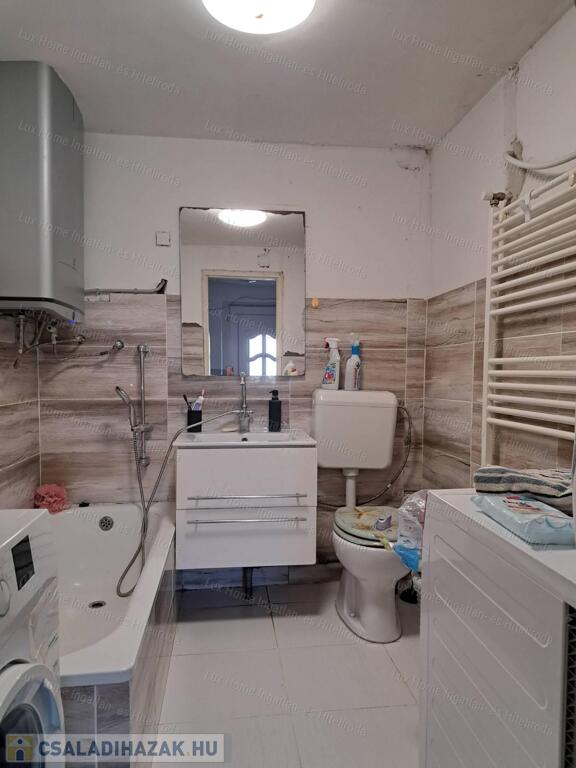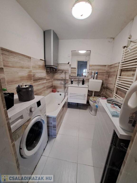 A fürdőszoba fel lett újítva, a vízvezetékek és a villanyhálózat cseréje is megtörtént az elmúlt években. A meleg vizet egy újonnan vásárolt villanybojler biztosítja.