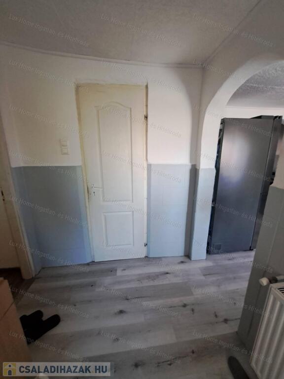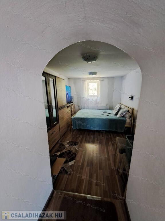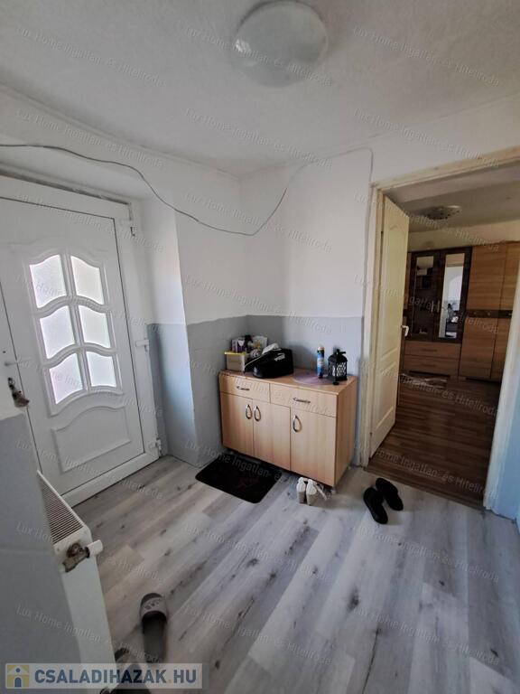 Eladó Oroszlány Falu részén csendes környezetben egy 60 nm-es, vegyes falazatú (vályog és tégla) családi ház, 200 nm-es telken.