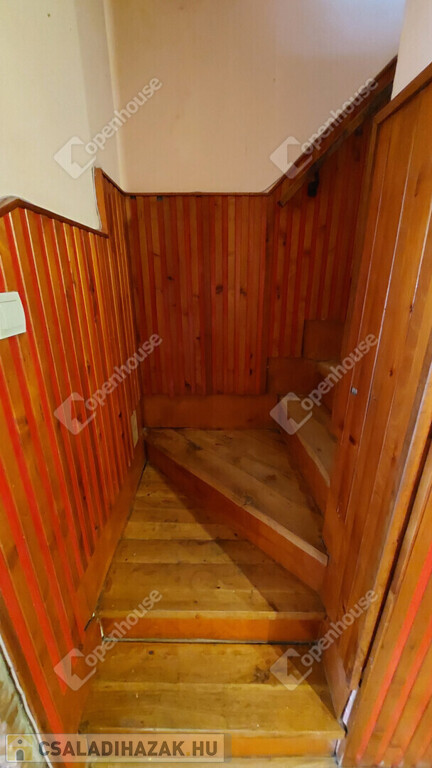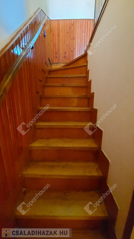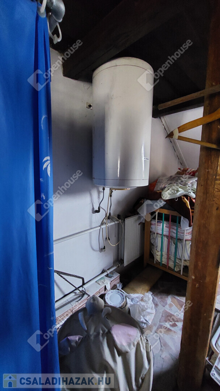 Tetőtér: beépített, burkolata kő, a víz- és villanykiállások előkészítve (mosdó, WC, zuhanyzó), mennyezete esztétikus, gerendás