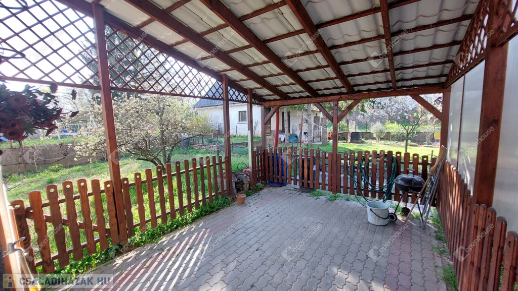 Kert: gondozott, különálló pincével (kiváló tárolási lehetőség), enyhén lejtős, nagyobb része vízszintes, így kiválóan alkalmas kerti pihenésre, játszótér, veteményes vagy grillező kialakítására