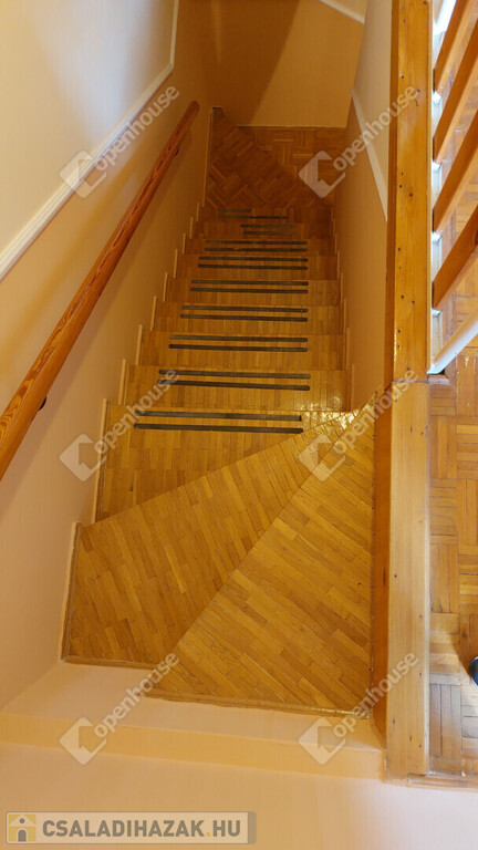 Földszint: előszoba, külön WC, konyha kamrával, tágas nappali; a bejárat előtt nagy terasz, ahonnan néhány lépcsőn keresztül, szintkülönbséggel juthatunk a gondozott kertbe. A nappalihoz nagy erkély tartozik..