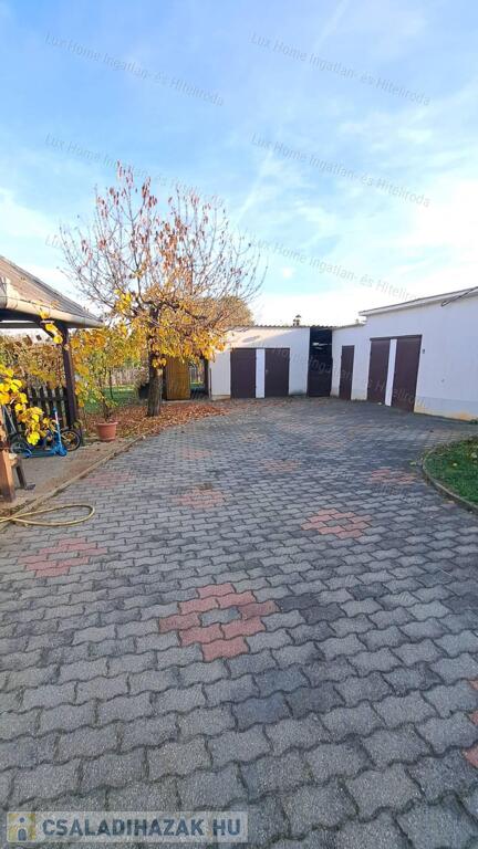 Az ingatlanhoz több melléképület és két garázs tartozik, amelyek további tárolási és használati lehetőségeket kínálnak.
