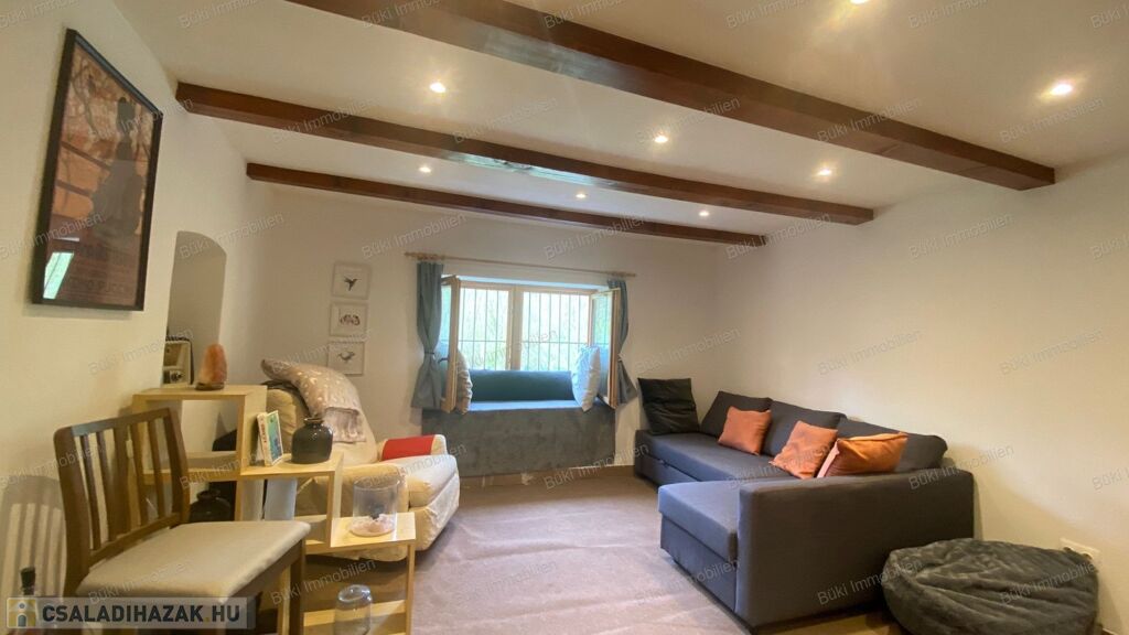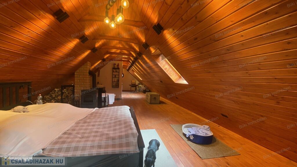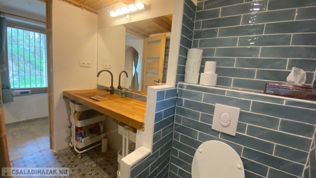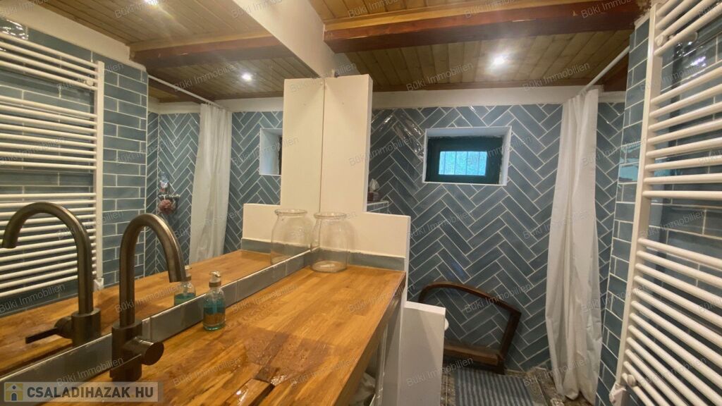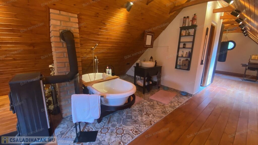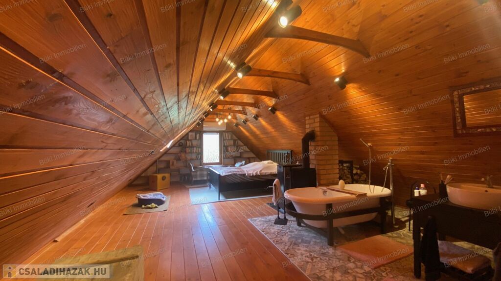 Az épület szerkezete és belső terei egyaránt megújultak: új tető, korszerű villamos- és vízhálózat, megerősített tartószerkezet, prémium nyílászárók és igényesen kialakított belső felületek biztosítják azt a minőséget, amely hosszú távon is megbízható és időtálló. Ez nem csupán felújítás, hanem egy tudatosan újragondolt otthon. A nappali a ház szíve, ahol a természetes anyagok és a látszó gerendák különleges atmoszférát teremtenek. A tér barátságos és hívogató, ideális családi együttlétekhez vagy meghitt estékhez. A kialakításnak köszönhetően egyszerre praktikus és hangulatos: egy olyan központi tér, ahol a mindennapok valóban élhetővé válnak. Az itt uralkodó melegség és nyugalom az egész ház hangulatát meghatározza. A tetőtér az ingatlan egyik legkülönlegesebb része. A ferde síkok és a fa burkolatok egyedi, meghitt hangulatot teremtenek, amely szinte azonnal otthonosságot sugároz. A tér melegsége és karaktere miatt tökéletes lehet pihenésre, alkotásra vagy akár egy teljesen elszeparált élettérként is. Itt valóban érezni lehet a ház lelkét, mert egy olyan hely, ahová jó visszavonulni, és ahol a nyugalom természetesen jelen van. A fürdőszoba kialakítása egyszerre modern és karakteres. A letisztult vonalvezetés és az igényesen megválasztott burkolatok egy nyugodt, harmonikus teret hoznak létre, ahol valóban jól esik lelassulni egy hosszú nap után. A természetes anyaghatású felületek melegséget visznek a térbe, miközben a praktikus elrendezés a mindennapi használatot is kényelmessé teszi. Ez nem csupán egy funkcionális helyiség, hanem egy olyan tér, ahol a napi rutinból feltöltődés lehet.
