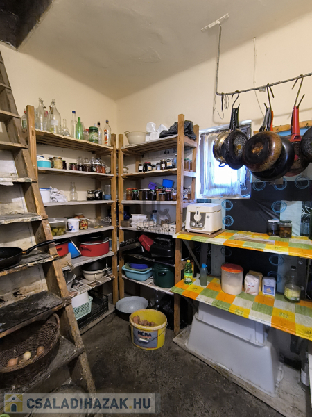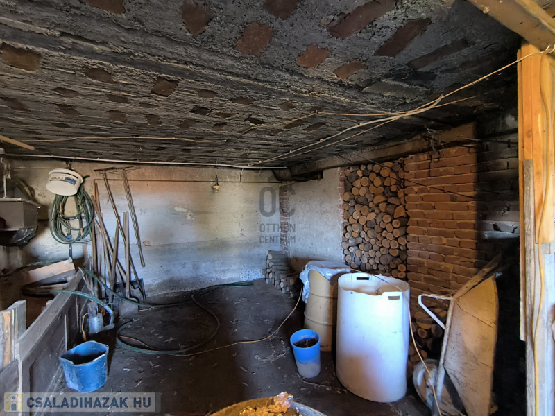 A ház részben alápincézett (a két első szoba kivételével), tüzifa illetve termény tárolására is alkalmas, de itt található a központi fűtésért felelős vegyestüzelésű kazán - gázvezeték az utcán található, nincs bevezetve -, valamint a melegvíz ellátásért felelős villanybojler is.