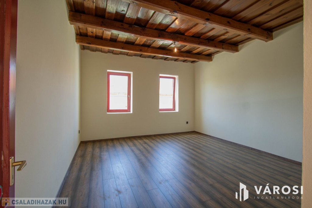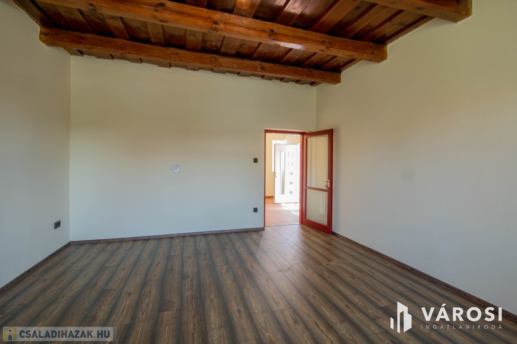 Alapja beton, falazata 55 cm vastag tégla. A falai szárazak. A nappali mennyezete gyönyörű fagerendás. A belmagasság 3 m. A szoba és a nappali új parketta burkolatot kapott. A többi helységben a burkolatok szép állapotúak. A nyílászárói nagyrészt fa, szigetelt nyílászárók. A bejárati ajtó és a konyha ablaka pedig műanyag, szigetelt nyílászárókra lett kicserélve. A tetőcserép is le lett cserélve és az ereszcsatornák is újak. A villamos hálózata újra lett húzva réz vezetékekkel és 3*16 amperre lett kibővítve, így kiválóan alkalmas klímával való fűtés/hűtésre a ház. A víz is teljesen új. A gáz teleken belül, a házban a gázcsövek is megtalálhatóak, igény esetén központi fűtés kialakítása lehetséges, de aki a fa tüzelést szereti, arra is van mód.