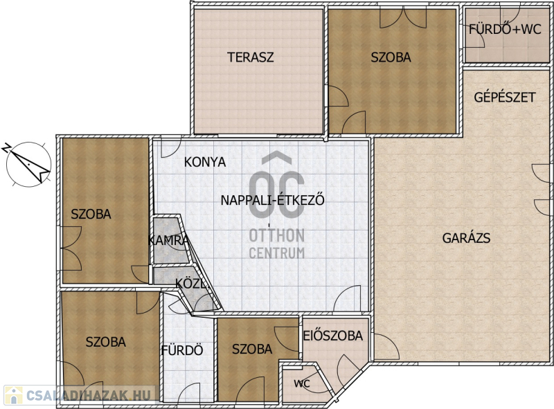 Automata garázskapun keresztül jutunk a 2 állásos garázsba, melyben külön helyet kapott a GÉPÉSZETI rész is.