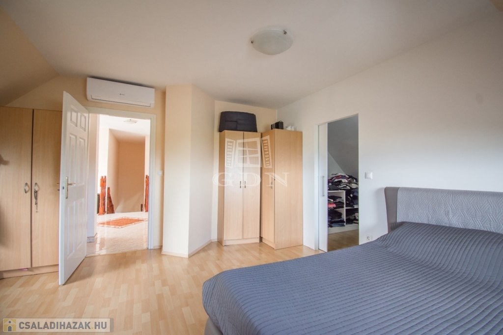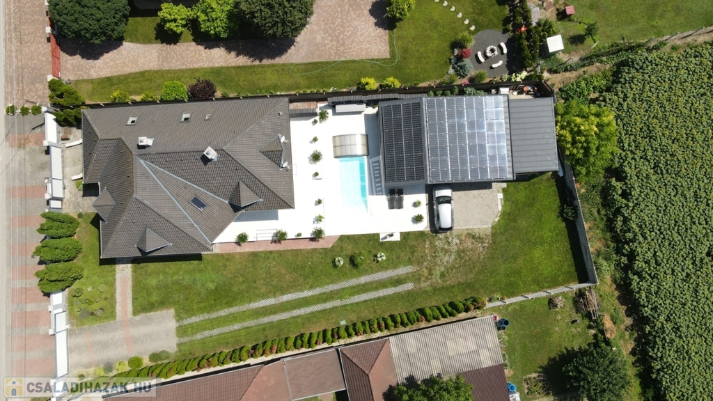 Az ingatlan összközműves, az épület 2004-ban, POROTHERM 38-as téglából épült+ 5cm szigeteléssel. A ház beton födémes, tető héjalása TONDACH tetőcseréppel készült. A fűtést hőszivattyú biztosítja, a hőleadásról radiátorok gondoskodnak. Alternatív fűtésként minden helységben hűtő – fűtő klímák találhatók. A nyílászárók 2 rétegű üvegezésűek, redőnnyel, illetve árnyékolóval ellátottak. A helyiségek minőségi burkolatokkal burkoltak. A villanyszámla szinte 0 ft, köszönhető a szaldós napelemnek évente 18.000 Kw termeléssel.