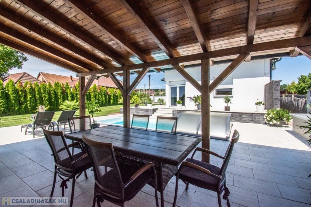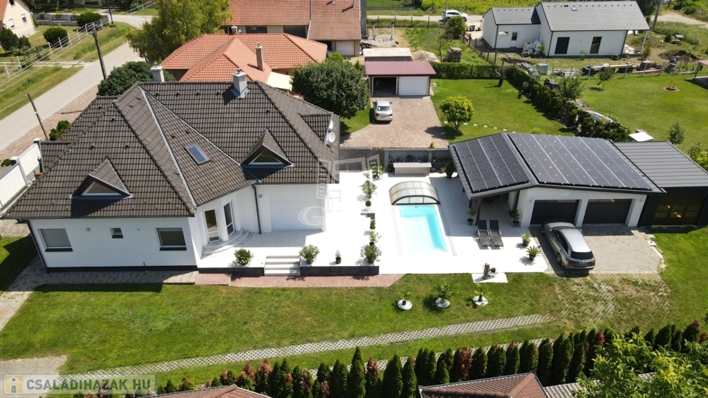 Vh-004171. Pákozdon, a Velencei-tó északi partján 1070 m2-es telken 230m2-es, nappali + 4 szobás családi ház, parkosított kerttel, nyári kiülővel, medencével eladó!