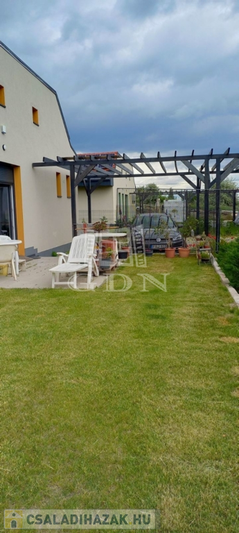 4842. Pákozd új kertvárosi lakóövezetében, 2024-ben épült, újszerű, nappali + 3 hálószobás, 79,1 m2 nettó alapterületű, korszerű ikerházi lakás, 16 m2-es belső udvarral, parkosított 243 m2-es saját kerttel, terasszal, parkolóhellyel, hőszivattyús fűtéssel, 5,8 kW napelem rendszerrel, gépesített Whirlpool konyhával eladó. Ár: 76 MFt