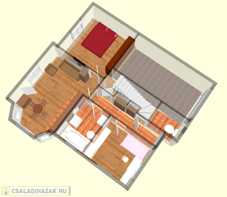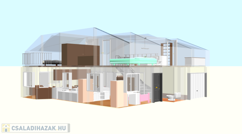 -a tetőtérbe a feljutás lakáson belül történik, de akár kívülről is kialakítható, így a felső szint akár egy külön generációnak kialakítható,