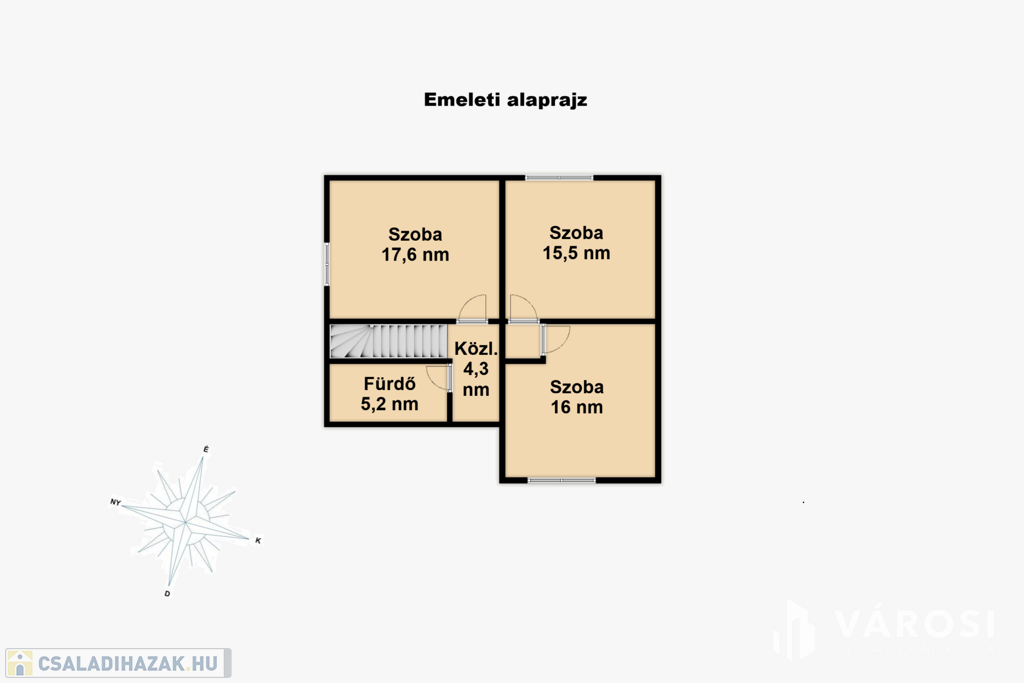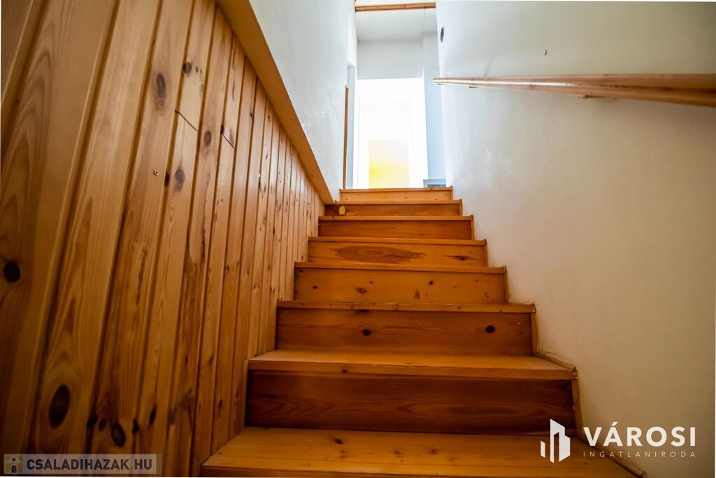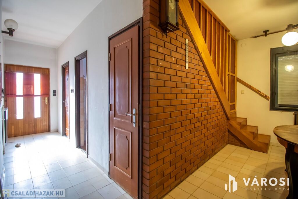 Az 1990-ben porotherm téglából épült, 130 négyzetméteres ház földszintjén nappali, egy szoba, konyha, étkező fürdőszoba és spájz található. Az emeleten három tágas hálószoba és egy fürdőszoba van. A hatalmas, 78 négyzetméteres pinceszint több funkcióra is alkalmas lehet. Egyelőre tárolónak és kazánháznak volt használva, de akár további garázs, műhely, szauna, billiárdszoba stb. is kialakítható. A 12 négyzetméteres garázsba még éppen belefér egy kisebb autó.