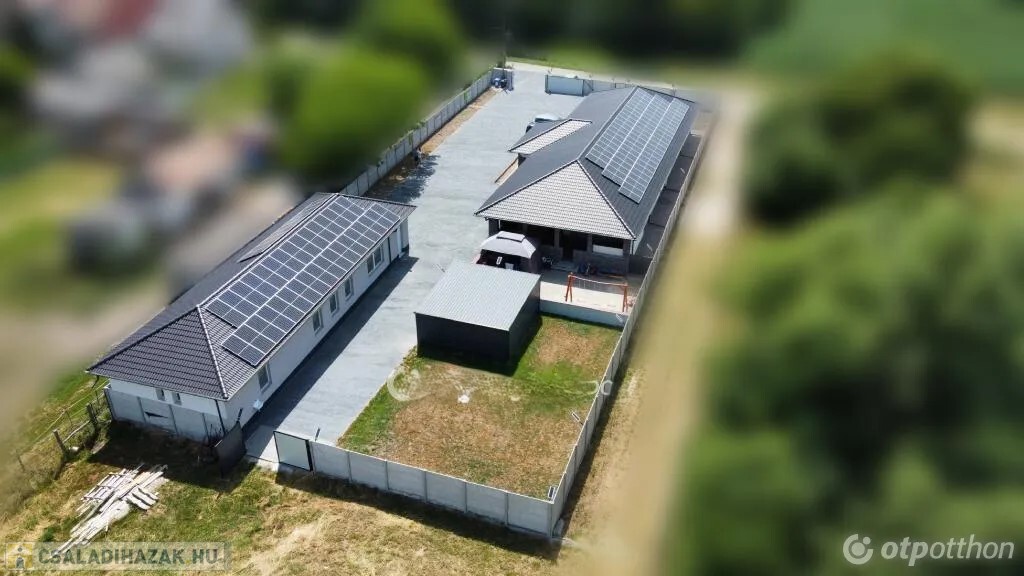 A csendes mellékutcából nyíló 7124 nm-es telek 2124 nm-es első részén 2022-ben prémium minőségű anyagokból és korszerű gépészeti megoldásokkal épült az ingatlan. A 2 méter magas betonkerítéssel körbekerített telekrészen az alábbi épületek találhatók: