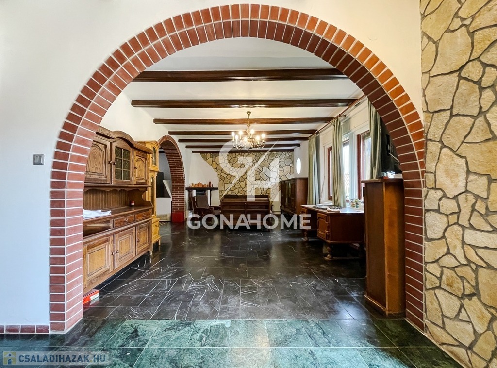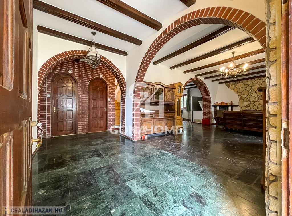 * Főépület: kétszintes, bruttó 320 m², 5 szoba + 2 nappali + étkező-konyha, 2 fürdőszoba, 2 külön WC, gardrób, erkély, részben alápincézett