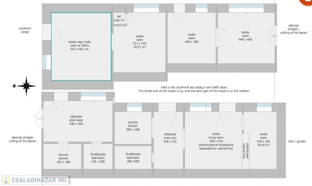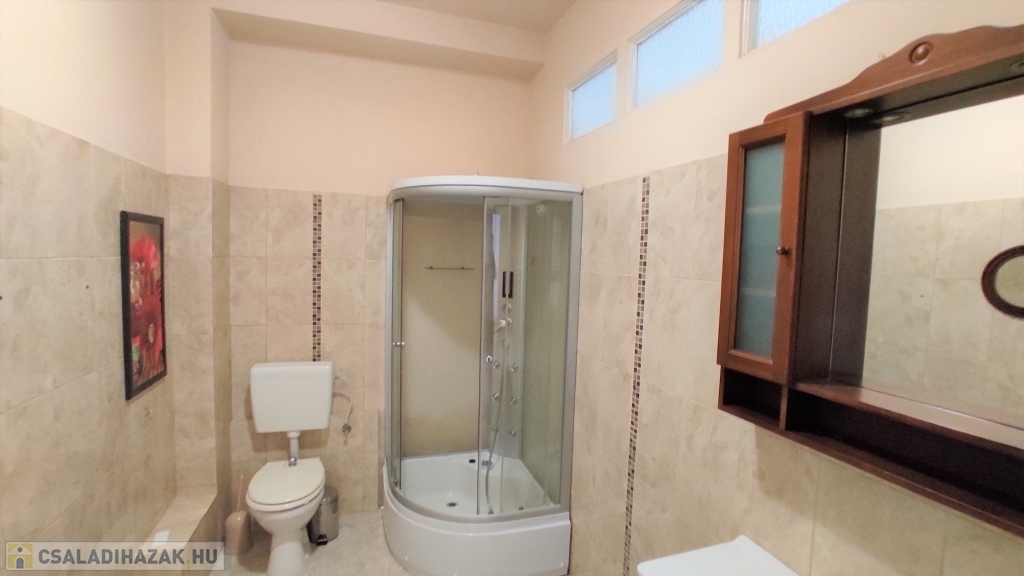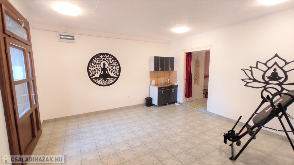 Az ingatlan bejárata a város főutcájára néz, ezért üzleti-irodai célra is kiváló. A 6 szobás, 3 fürdőszobás, 2 konyhás ház azonban 3 különálló bejárattal is rendelkezik, és a telken befelé haladva csendes lakóotthon kényelmét nyújtja. Falai 70 cm vastagságúak, a ház alatt pedig hatalmas kőpincével rendelkezik, ami kb. 35 nm méretű.