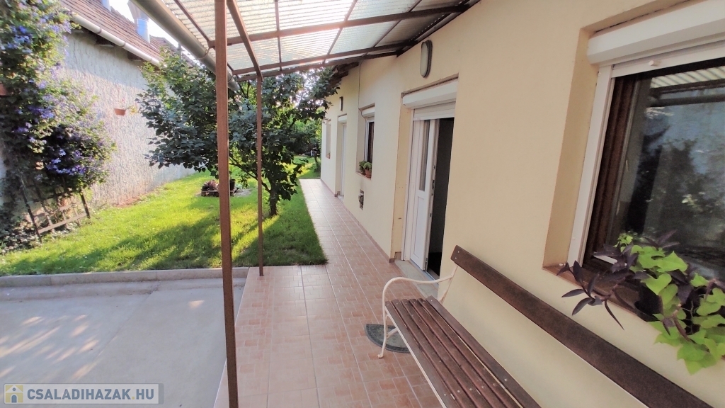Az ingatlanhoz tartozik egy 684 négyzetméteres rendezett sík telek kert termő gyümölcsfákkal.