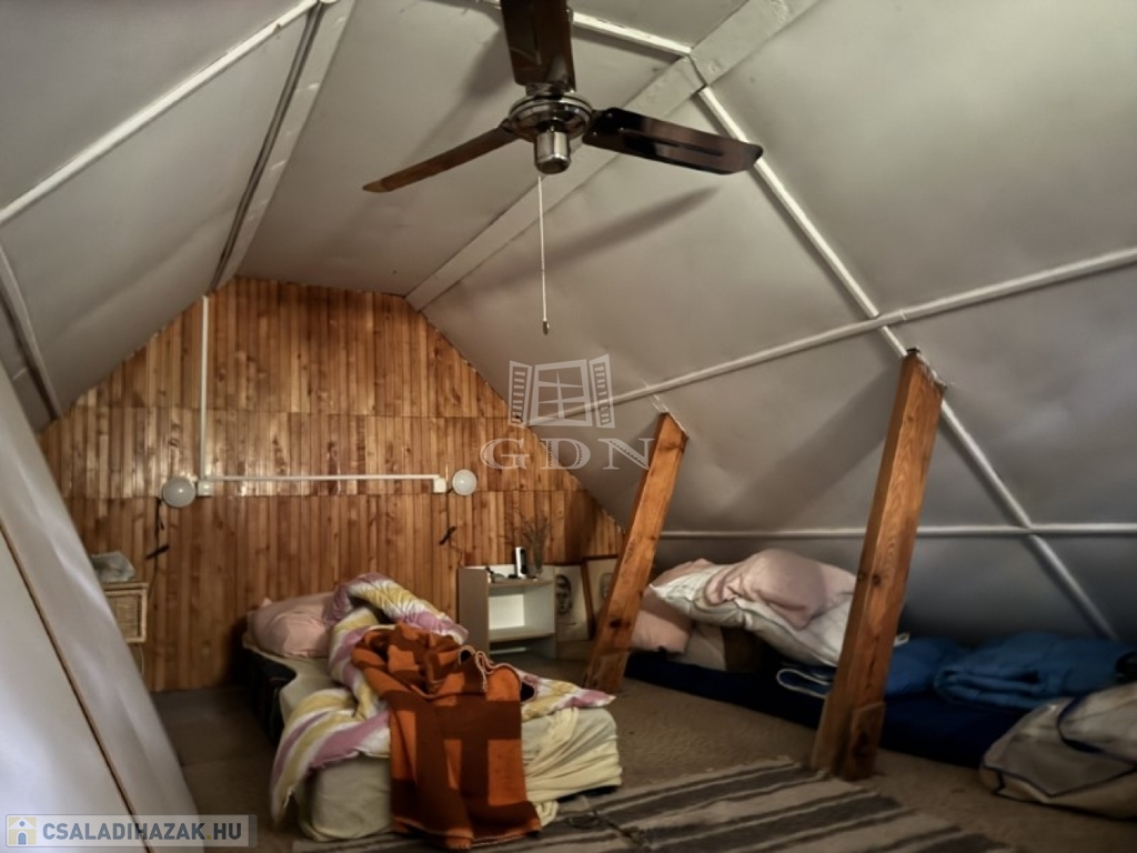 A tetőtér beépítésre került, hálószobaként funkcionál.