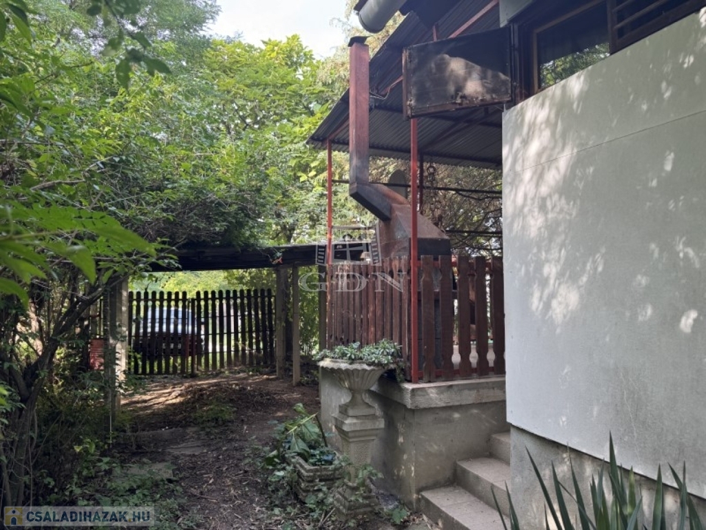 A telek 1430m2, egy része fákkal beültetett, hátsó részében szőlős található.