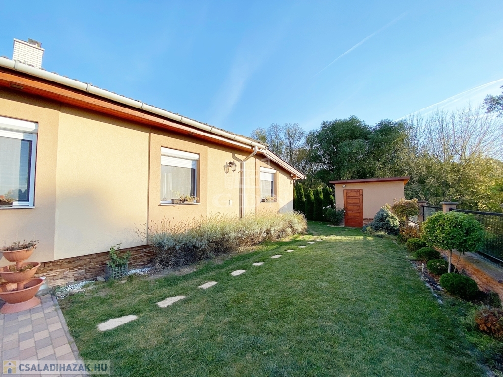 A 380 m²-es telek gondozott, parkosított, rendezett kerttel rendelkezik. A telken 5 m²-es tároló is található, mely extra helyet biztosít a mindennapokhoz. A beton födém lehetőséget kínál a tetőtér későbbi beépítésére, így a ház tovább bővíthető.