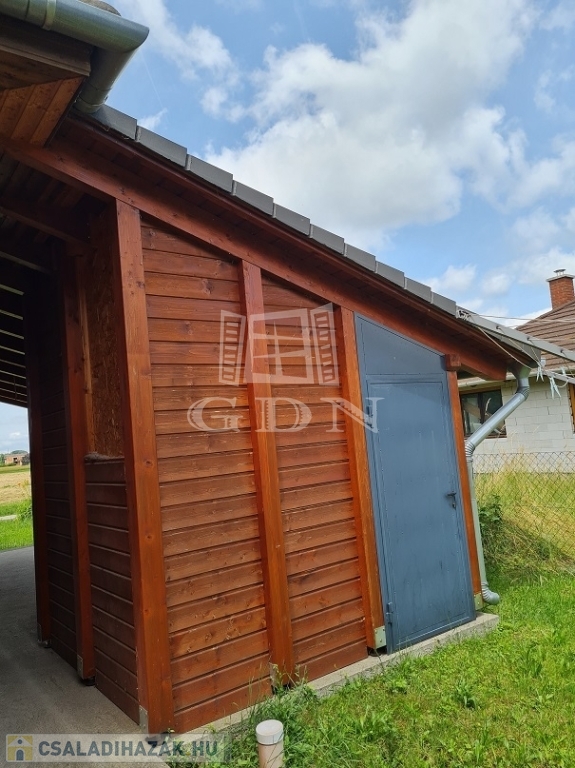 - Az északi oldalon egy fedett kocsibeálló lett építve, mögötte egy 6 m ² zárt tárolóval.