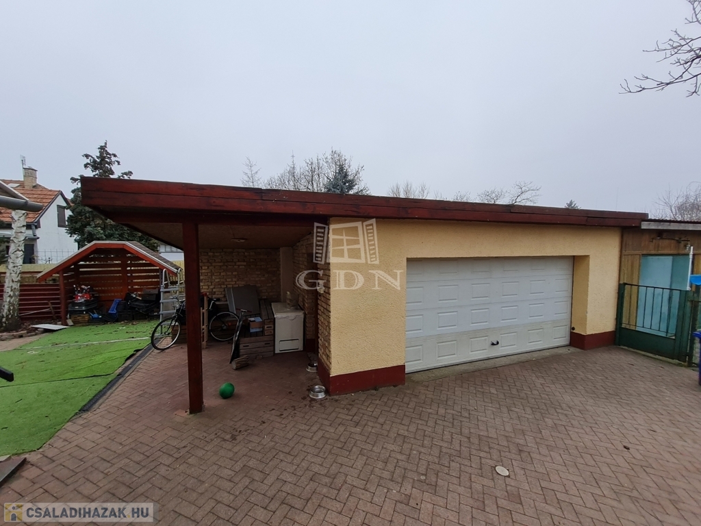 A két lakrészhez, 632 m² telek tartozik. Az udvaron, kétállásos GARÁZS és TÁROLÓ, és a ház egy része alatt PINCE van.