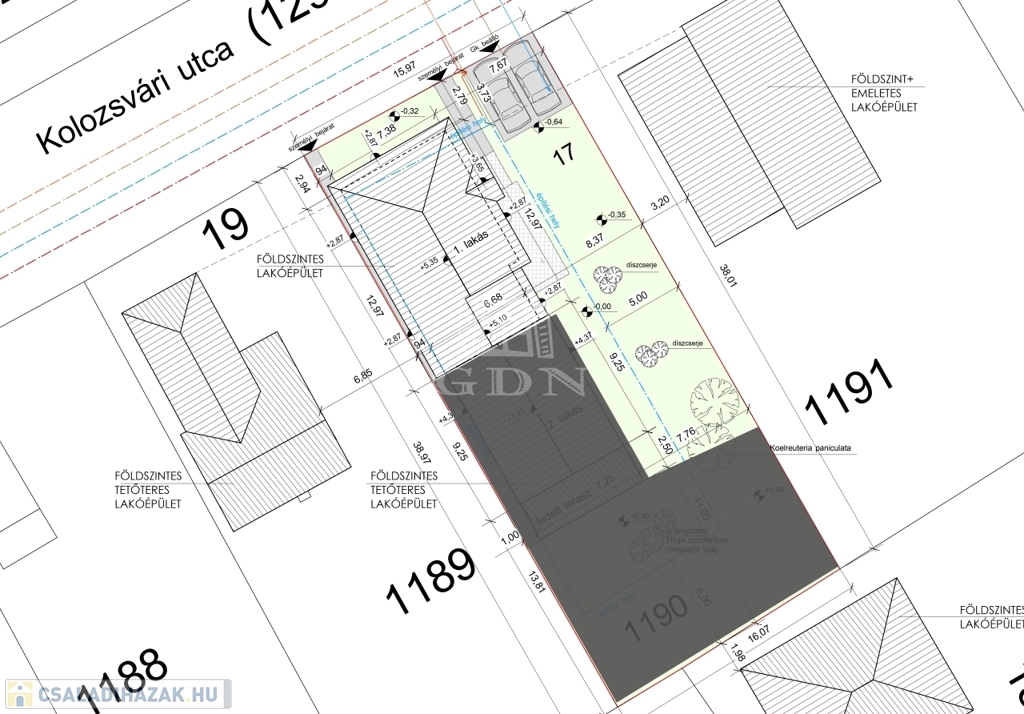 A térkövezett járda és autóbeálló, elektromos kapu, valamint a modern, letisztult kerítés tovább emeli a ház kényelmét és esztétikáját.