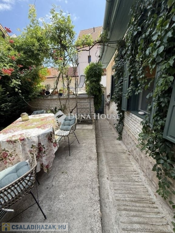 Eladó Pécs belvárosában egy különleges hangulatú, belső kétszintes, 100 négyzetméteres családi ház garázzsal és saját, mediterrán stílusú udvarral. Az ingatlan teljeskörűen felújított, igényes kivitelezéssel, modern megoldásokkal.Az alsó szinten tágas nappaliétkező, fürdőszoba és külön WC található, valamint kényelmes padlófűtés gondoskodik a komfortérzetről. Az emeleten két hálószoba, egy világos nappali és egy fürdőszoba kapott helyet.A házhoz tartozik egy különálló tároló, valamint egy saját garázs, melynek tetején napozóterasz került kialakításra ideális helyszín a reggeli kávéhoz vagy egy délutáni pihenéshez. A hangulatos, zöld belső udvar mediterrán növényeivel igazi oázist nyújt a város szívében.Az elhelyezkedés kiváló: a belváros minden kényelme üzletek, éttermek, iskola, tömegközlekedés gyalogosan könnyedén elérhető. Az ingatlan ideális választás lehet saját otthonnak, de befektetésként például vendégháznak vagy hosszú távú kiadásra is kiváló lehetőség.Ne hagyja ki ezt a ritka alkalmat! További információért és megtekintésért kérem, keressen bizalommal.
